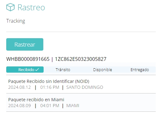 Le informamos que su paquete, identificado con el número de seguimiento [1ZC862E50323005827], se encuentra actualmente en estado NOID y está registrado bajo el número de guía [WHBB0000891665]. Estaremos contactando al personal encargado en Miami para que su paquete sea identificado bajo su número de membresía.
