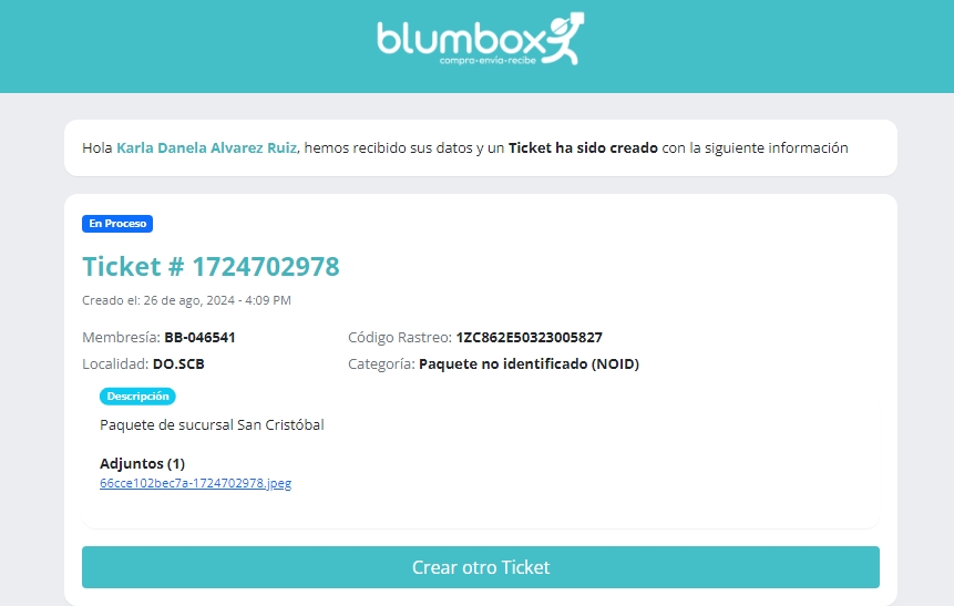 En caso de necesitar asistencia en otros temas, puede crear un nuevo ticket en nuestra plataforma ticket.blumbox.do o ponerse en contacto con el Servicio al Cliente de su sucursal.
